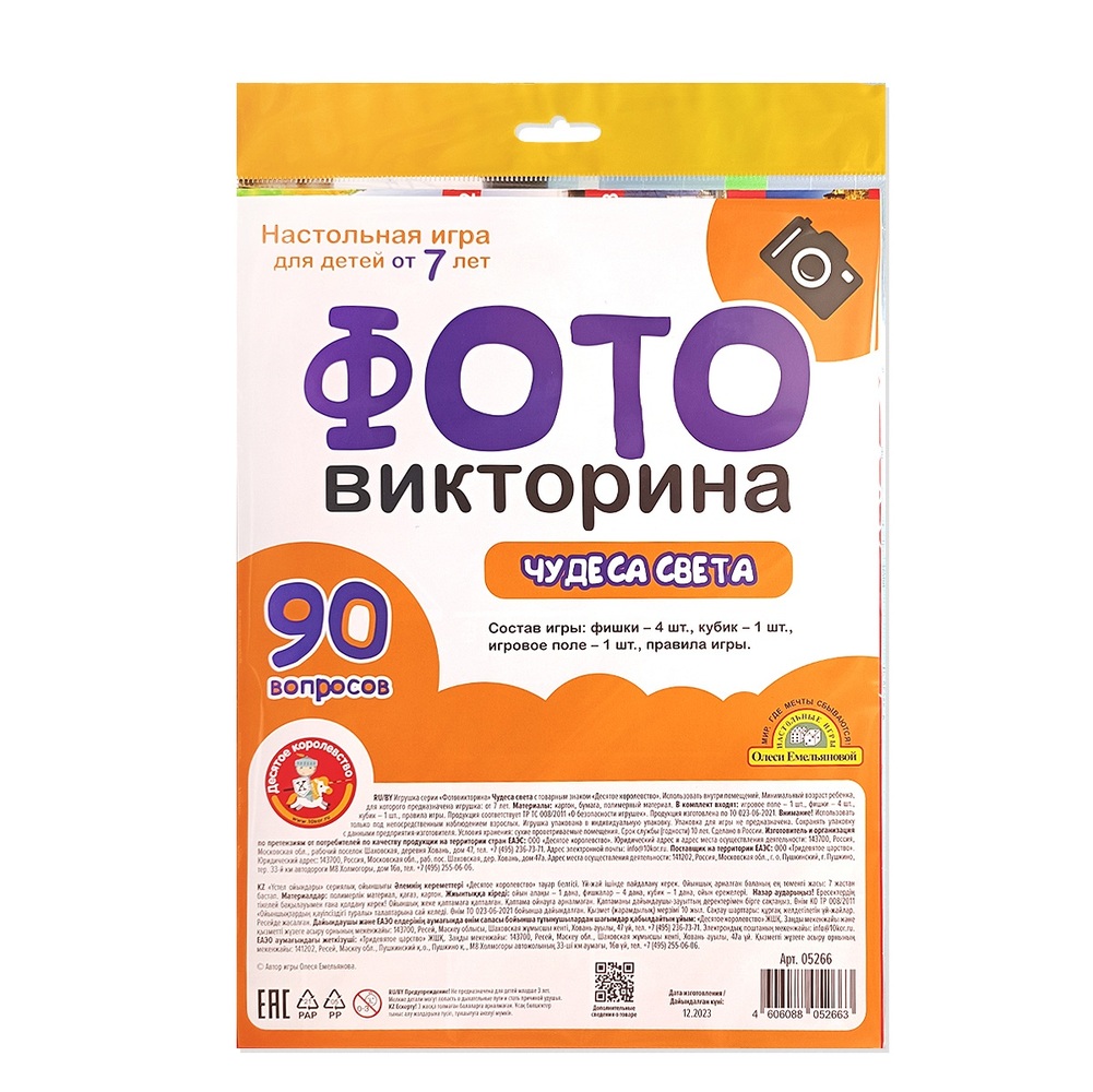 Настольная игра ходилка «Чудеса света» ФОТОвикторина (европодвес) - это захватывающее путешествие по всему миру. Играя в эту игру, дети запомнят не только внешний вид и название шедевров архитектуры и культуры народов мира, но и узнают их расположение на карте. Рекомендовано для детей от 7 лет. Размер 2х23х34 см