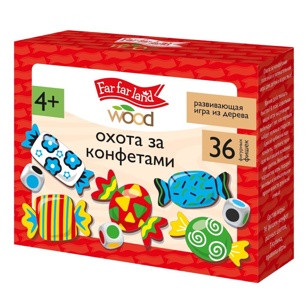 Развивающая деревянная игра «Охота за конфетами» - это игра для тех, кто любит игры на реакцию, внимательность и яркие эмоции! Фигурки выполнены из экологичного древесного материала, толщина всех элементов около 3 мм, края закруглены и тщательно обработаны. Предназначены для детей от 4-х лет. Размер 4х14х12 см