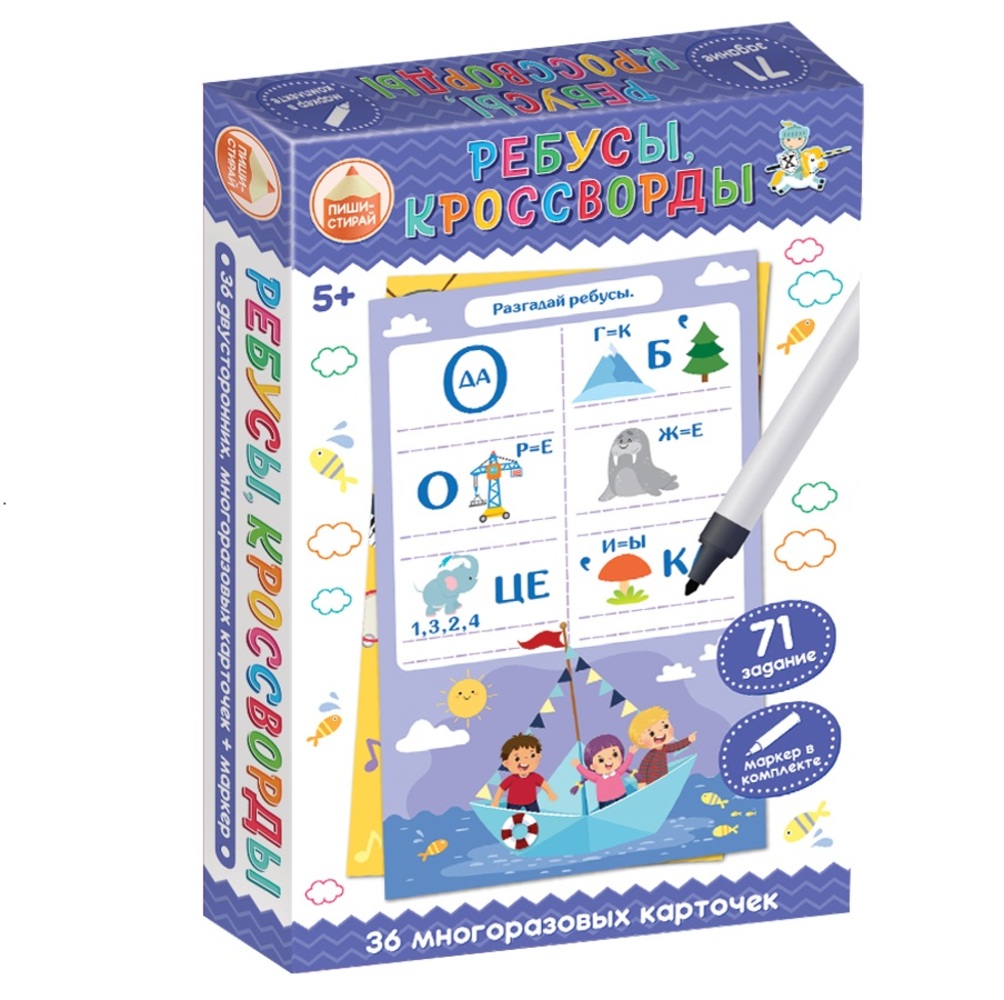 Помогите маленькому совёнку решить примеры, подобрать ингредиенты для пиццы, расшифровать значение пословиц, найти спрятавшиеся слова и выполнить еще множество невероятно интересных заданий! Состав: • многоразовые двусторонние карточки из ламинированного картона (71 задание) – 36 шт. (15,5 х 9,8 см) • маркер на водной основе со стирающей губкой – 1 шт. Игра предназначена для детей от 5 лет. Размер 2х12х18 см